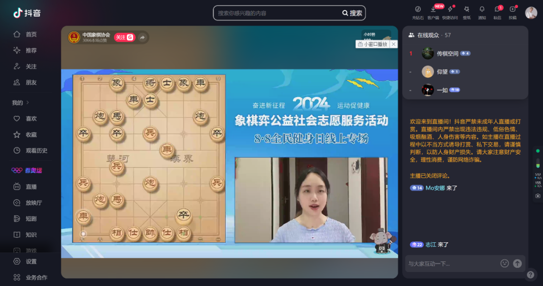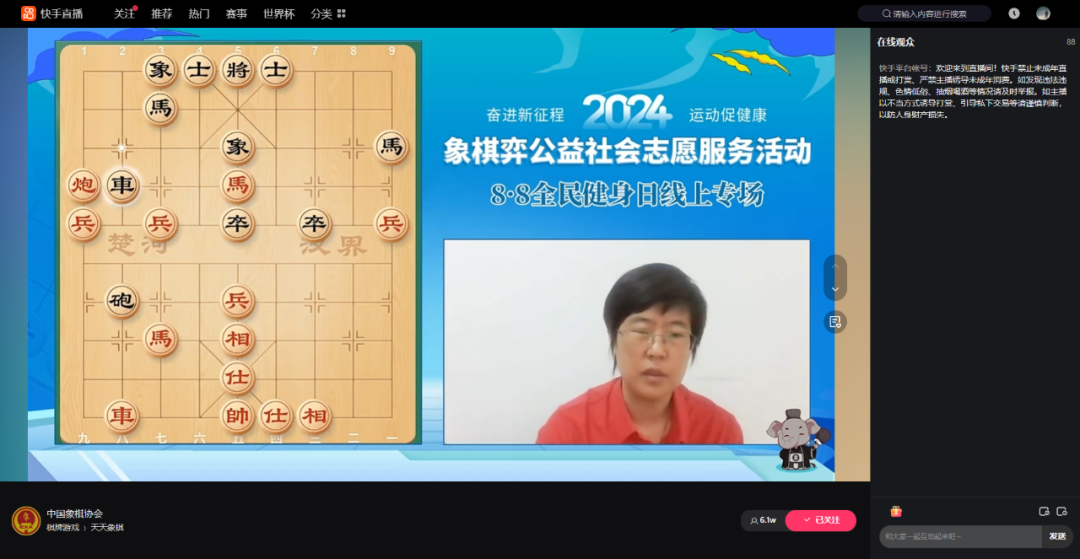 8月8日下午,“奔跑吧·少年”2024全国象棋校际联赛全民健身日专场活动象棋“云”课堂准时上线。