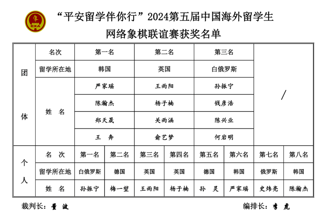 “平安留学伴你行”第五届中国海外留学生网络象棋联谊赛圆满收官
