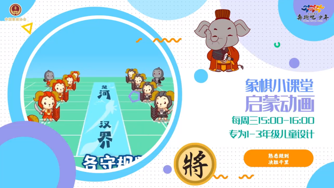请将解答残局用时的比赛截图、参与活动照片、解答视频、游戏ID截图、短视频账号点赞截图以及本人姓名、学校、所在班级等信息,全部发送至邮箱xiangqiqsn@163.com,组委会将参与纪念证书回复至申请邮箱。邮件主题格式:校际联赛 “六一”专场活动证书申请+姓名+学校。 “奔跑吧·少年”2024全国象棋校际联赛<象棋小课堂>,分为启蒙动画课程和初级杀法课程,通过网络授课的形式,邀请专业象棋老师进行授课;活动以学校为单位,由老师组织同学们在校集体观看或在家自行观看。2024年6月5日-6日,每天15:00-16:00