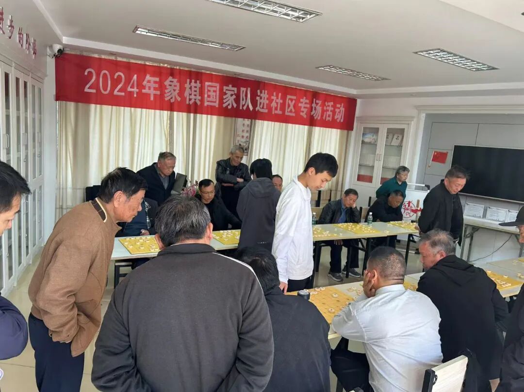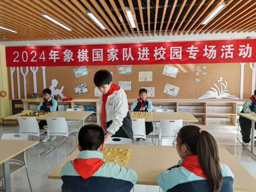 10月30日下午,全国象棋青年大师赛完赛后,在泰州医药高新区举行了2024年象棋国家队进校园、进社区活动,象棋国家队队员、本次比赛冠亚军走进口岸小学和口岸街道新城社区与象棋爱好者进行切磋交流,弘扬中国传统文化,点燃群众参与热情。象棋国家队队员杨世哲和青年大师赛女子亚军杨若诗走进泰州市口岸小学,捐赠象棋棋具并与学校智谊象棋社团的同学们进行了交流,以车轮战的方式与社团成员切磋棋艺。